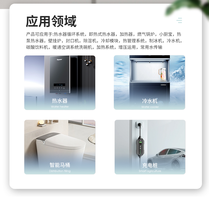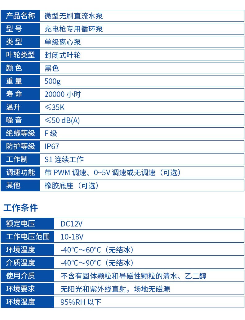 充電樁液冷無刷直流水泵作為單級離心泵搭載封閉式葉輪,具備IP67高防護(hù)等級與F級絕緣,支持S1連續(xù)工作模式,可選PWM/0~5V調(diào)速及橡膠底座,適配10-18VDC寬電壓,介質(zhì)溫度耐受-40℃~90℃,壽命長達(dá)20000小時,靜音運(yùn)行(≤50dB(A)),充電樁液冷無刷直流水泵適配多場景流體輸送需求。